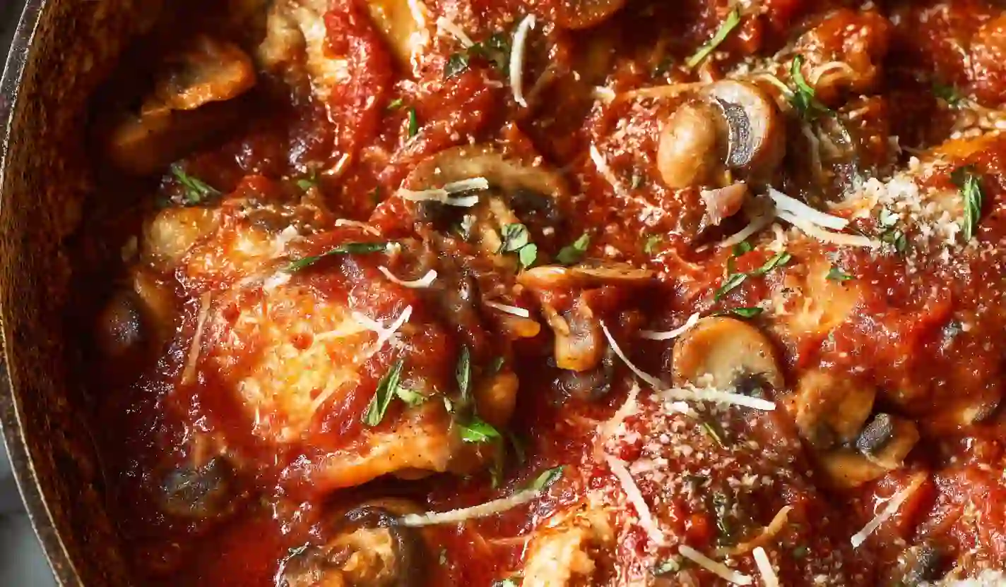 Nestle the chicken thighs back into the sauce, along with any juices from the plate. Partially cover the pot and let it simmer for 15 to 20 minutes, until the chicken is cooked through and tender and the mushrooms are soft. This slow simmer is what turns simple ingredients into comforting, family-style comfort food.