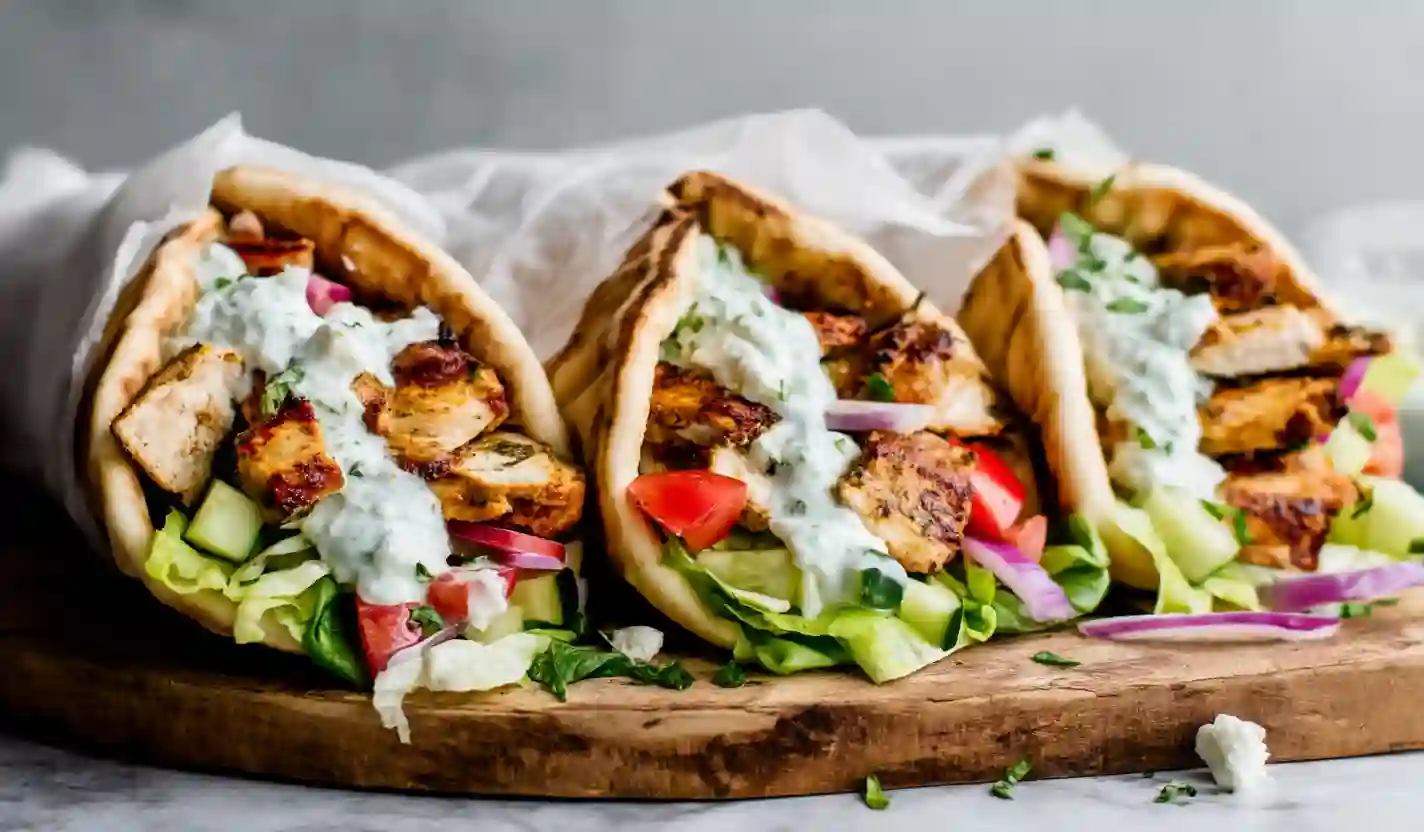 Warm pita, juicy spiced chicken, and cool tzatziki drifting through the kitchen air.