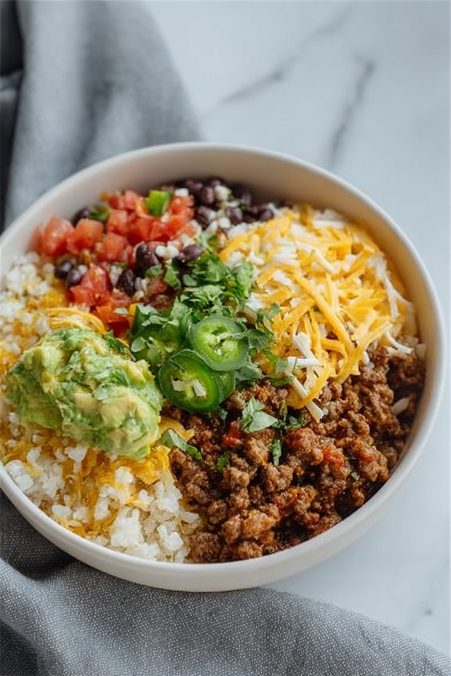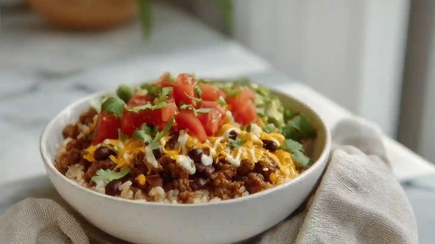 Each bowl is a warm hug, filled with savory ground beef, fluffy rice, melty cheese, and vibrant toppings. It’s simple to make, satisfying, and full of fresh flavors that bring the whole family to the table.